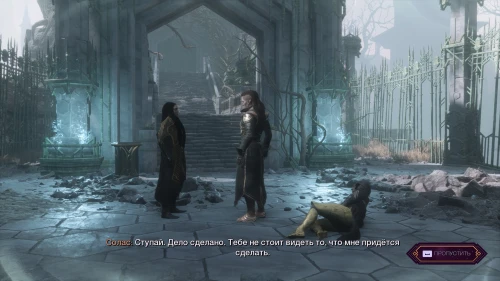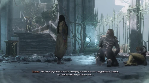 Поднимитесь по лестнице и пройдите далее, где вы сможете прослушать диалог Тарасал и самого Соласа. После этого откроется следующая дверь, ведущая прямо к головоломке.