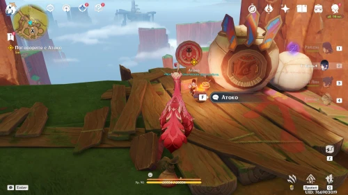 Далее вновь летите к Атоко и взаимодействуйте с ним в форме кукузавра. Теперь вам нужно будет выбрать правильный вариант ответа: «Легонько толкнуть его в спину»