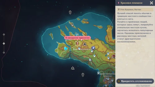 Разобравшись с указанными выше требованиями, перейдите в раздел «Задания легенд» в журнале, а потом откройте категорию «Хроники племен» и кликните по панели «Тлалокан: клан Цветочного пера», а затем начните отслеживание третьей главы.