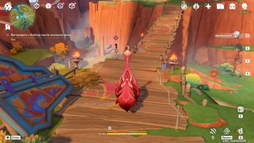 Переместитесь к статуе Пиро Архонта к западу от поселения племен и бегите на восток в сторону деревянного моста. На нем вы обнаружите девушку по имени Койлур, над которой будет висеть розовый восклицательный знак. Начните говорить с ней для старта квеста.