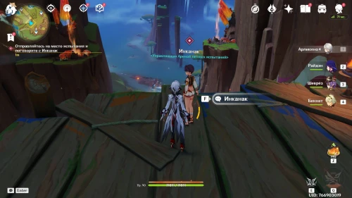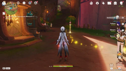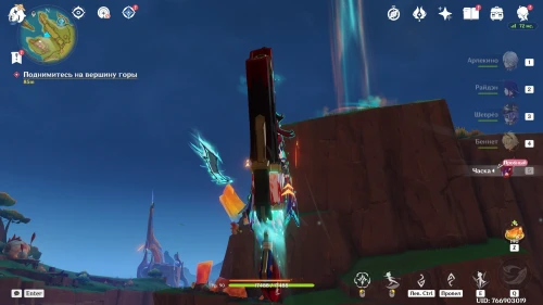 Итак, активируйте элементальный навык Часки, чтобы перейти в режим полета, а затем спуститесь вниз и выстрелите в первый кристалл. Затем двигайтесь к скале на востоке, подбирая по пути красные огоньки с флогистоном, и уничтожьте второй кристалл.
