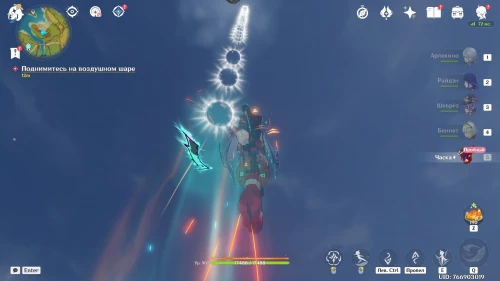 Вы создадите мощный воздушный поток на вершине скалы, поэтому поднимитесь на нее для начала нового ролика. К вам снова присоединится Коя. После завершения кат-сцены, вновь активируйте умение Часки и залетите в центр ветра, чтобы подняться наверх и забраться на воздушный шар.