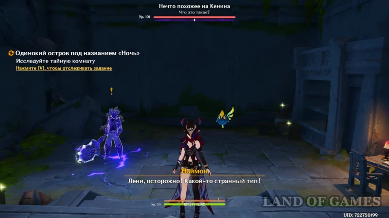 Подойдите к переключателю с золотистым камнем и нажмите «Активировать». После попытки запуска за спинами героев пробудится «Нечто, похожее на Кенина» – монстр Сумрачная мимифлора, которую нужно победить.