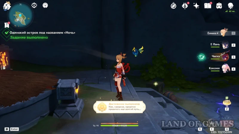 Скрытая ачивка «Нам, наверное, придется проделать еще долгий путь...» выдается автоматически после полного прохождения квеста «Одинокий остров под названием "Ночь"». Вы можете получить за нее +5 примогемов из сборника «Чудеса света».