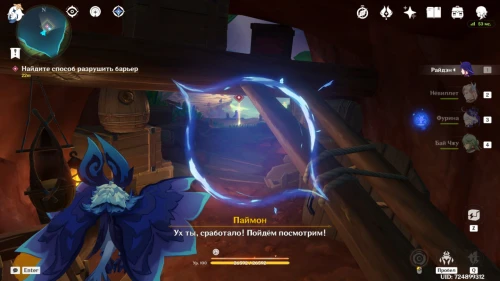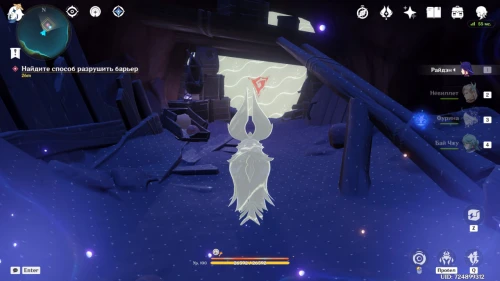 Дойдя до тупика, используйте чувство стихий, чтобы увидеть особый символ. Зажмите кнопку атаки, чтобы открыть проход.