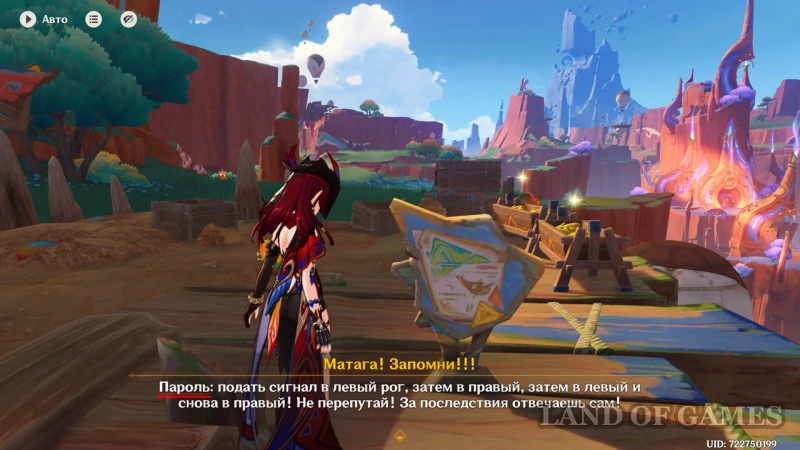Сначала доберитесь до места, отмеченного на карте выше (юг кряжа Тецкатепетонко). Попав в эту область, Паймон обратит внимание на парящий высоко в небе дом и предложит найти способ подняться к нему. Далее бегите к выложенной деревянными досками площадке и прочитайте табличку «Матага! Запомни!!!» (она стоит сразу за подъемом по веревочной лестнице, по краям которой расположены два золотых горна).