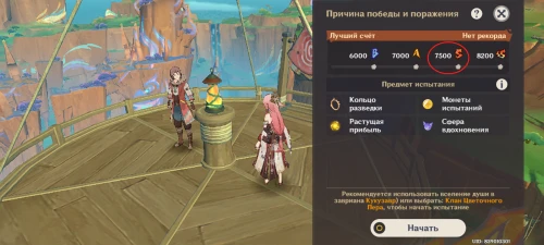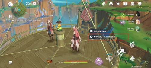 Когда цель задания будет выполнена, вы автоматически вернетесь на платформу, где начиналось испытание. Акомитль поблагодарить вас за оказанную помощь. На этом квест завершится, а вы получите 30 примогемов, 250 очков опыта, мору и материалы для повышения уровня персонажей и оружия.