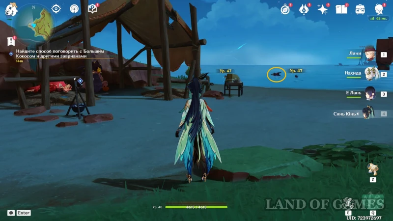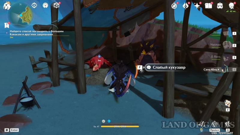 Начнем поручение со знакомства с НПС, осматривающим лежащего тепетлизавра на берегу к юго-востоку от туманного острова — приблизьтесь к метке поручения и выясните, что случилось.