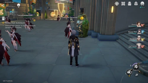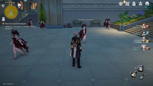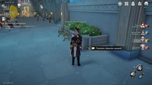 Вы сможете обнаружить Тинъюнь (почти привычную) лишь после общения с 7-ю ее дубликатами в отмеченной зоне. Сделать это можно в любой последовательности. Вначале можете пообщаться с Важной шишкой, которая стоит рядом с клумбой (смотрите скриншоты ниже).