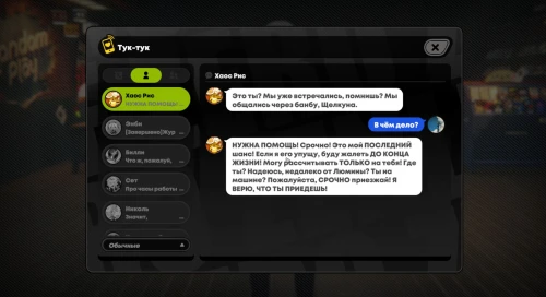 Разобравшись с указанными требованиями, вам на телефон должно будет прийти сообщение о знакомой с ником Хаос Рис. Прочитайте переписку с ней в своем «Тук-туке» и согласитесь прийти за ней. После этого в вашем ежедневнике появится соответствующая миссия – просто начните ее отслеживание.