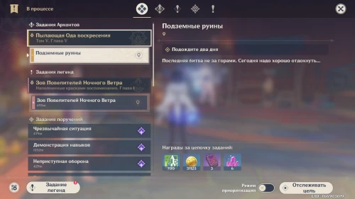 На этом вся цепочка подойдет к концу. В качестве вознаграждения за ее прохождение вы получите 1225 очков приключений, 54 тысячи моры, 30 примогемов, 5 книг героя? 10 волшебной руды усилении, Хроники Пилигрима и краеугольный камень звезд и пламени.