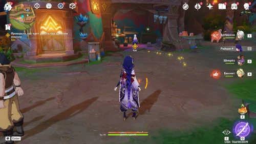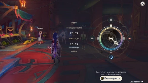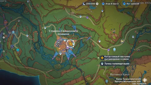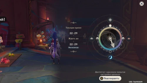 Снова подождите 2 игровых дня, воспользовавшись меню Паймон, и остановите время на отрезке между 08:00 и 14:00. Затем направляйтесь к мосту, ведущему на Стадион священного пламени, и взаимодействуйте с небольшим порталом, на который указывает маркер, чтобы войти в сюжетное подземелье «На тропе войны».