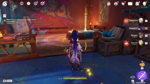 Первым делом подождите 2 игровых дня с помощью меню Паймон. Далее отправляйтесь в гостиницу «Обитель усталости», расположенную на Стадионе священного пламени и войдите внутрь. Поднимитесь на второй этаж в свой номер и подойдите к квестовому маркеру на кровати для начала новой кат-сцены.