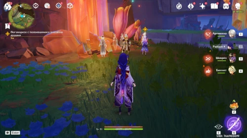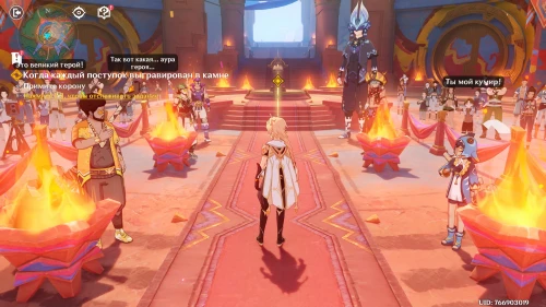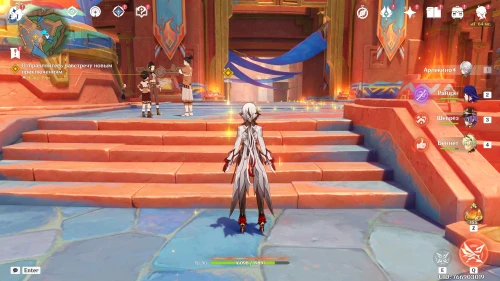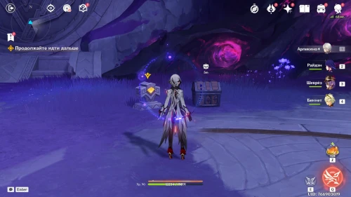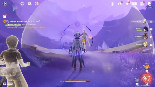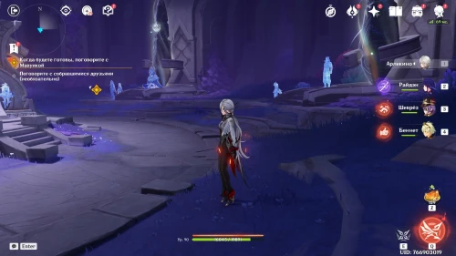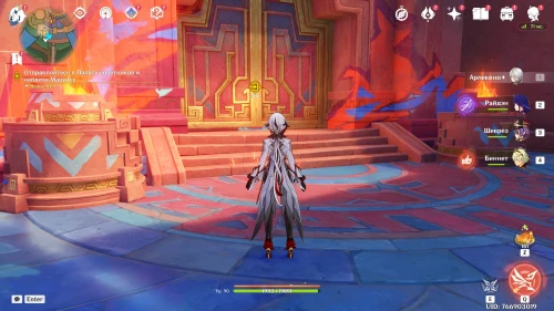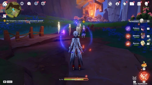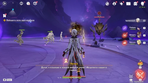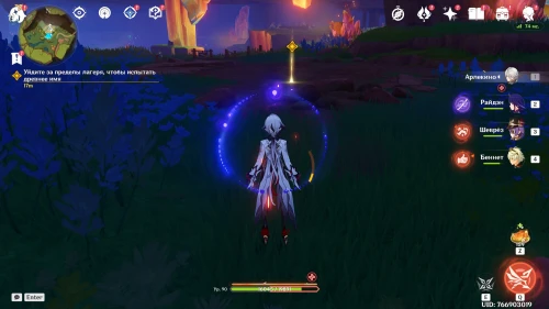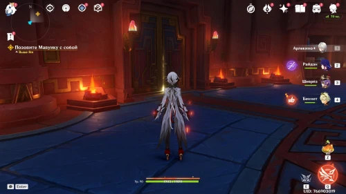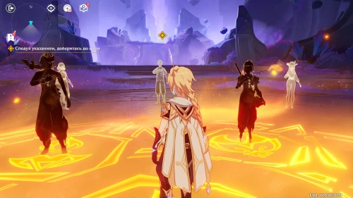 Советуем вам сразу же выбрать свой самый наиболее прокаченный отряд, так как вам предстоит сражаться с множеством врагов в этом данже. После начала миссии вы возьмете под управление Путешественника. Идите вперед к центру арены и послушайте речь Пиро Архонта. После этого вы отправитесь в Царство Ночи.