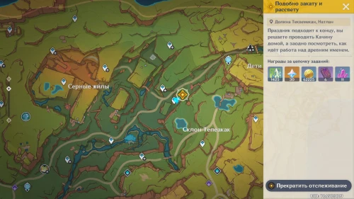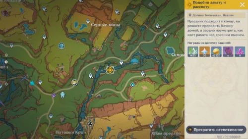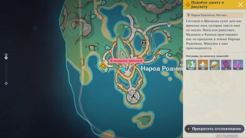 На этом задание подойдет к концу. В качестве вознаграждения за его прохождение вы получите 1425 очков приключений, 62 тысячи моры, 30 примогемов, 6 книг героя и 11 волшебной руды усиления.
