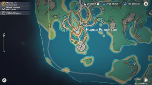 Телепортируйтесь к тотемному столбу Народа Родников и поговорите с Муалани, Киничем и Качиной, занятыми рыбалкой у берега.