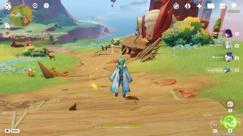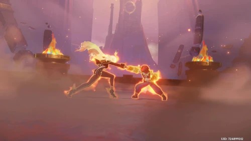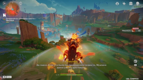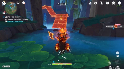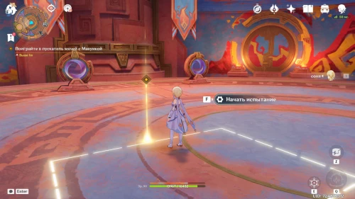 Получив управление над Мавуикой, используйте ее элементальный навык (прожмите его дважды), чтобы призвать пламецикл. На нем отправляйтесь вслед за летающим огоньком, по дороге собирая флогистон, используя духовные пути и флогистоновые плиты.