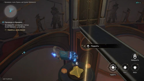 Далее поднимите механизм справа от клинка и отпустите его возле статуи. Можете выйти из данного режима. Снова подбегите к мечу и зажмите «Пробел» для его установки в выемку. В результате вы сможете поднять площадку и разблокировать секретный проход.
