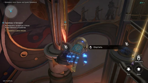 Потом пройдите в другую сторону к следующему указателю. Вы обнаружите, что статуе не хватает одной детали. Спуститесь еще ниже и взаимодействуйте с очередной консолью для управления рукой Загрея.