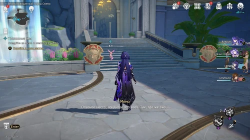 Далее поговорите с Отдыхающим стражником, стоящим рядом с колонной. Он поведает вам, что Пасифея на самом деле устала, поэтому ушла. Вы решите проникнуть в ее сновидения, и для этого вам потребуется помощь компаньона – вновь встаньте на квестовый маркер возле водопада.