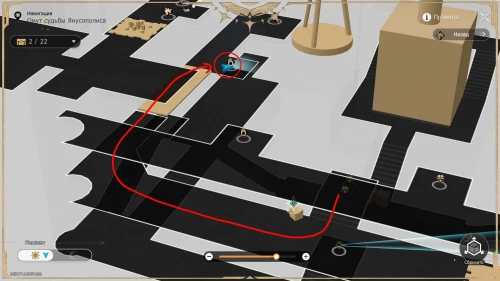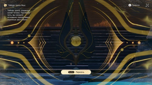 Послушав монолог прорицательницы, взаимодействуйте с устройством и ступите на тайную тропу. Далее решите небольшую головоломку с формированием правильного рисунка, двигая указатель (мышку) сначала влево, а потом наверх. На гифке ниже показан весь процесс.