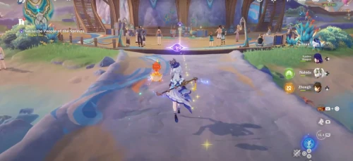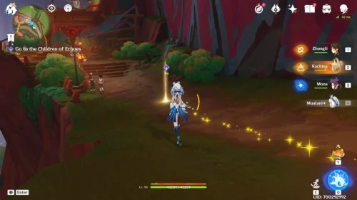 Отправляйтесь на север от тотемного столба Народа Родников и обсудите с Айюном традиционную музыку Натлана и Фонтейна.