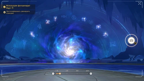 Пообщавшись с друзьями, идите к квестовому маркеру и сфотографируйте Вихрь сотворения. Поднимите камеру немного вверх, чтобы в объектив попали все 12 созвездий, как показано на картинке ниже.