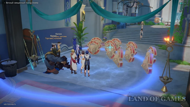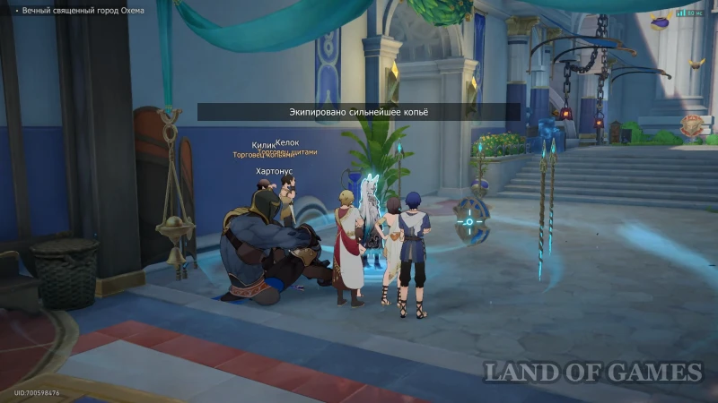 Далее посетите улочку на северо-востоке от якоря Мраморная ярмарка в Охеме и присоединитесь к толпе зевак, осматривающих оружейные товары Килика и Келока. Чтобы стать участником квеста, разрешите задумавшемуся Первопроходцу «Послушать зазывные речи торговцев...». Ваше внимание будет приковано к Келоку — торгашу «подлинными щитами Геориоса», и его товары мы будем проверять в первую очередь.