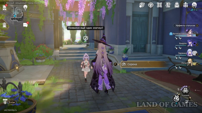 Затем переместитесь на Мраморную ярмарку в южной половине священного города и пройдите до улочки со Святым пламенем на западе рынка: здесь как раз пробегает шумный ребенок, которого получится остановить только в этом узком проходе. При первом разговоре Серена предложит выслушать сенсацию за небольшую плату, расскажет странную байку про титанов, а затем...героя неожиданно погрузит в сон, после которого он опомнится уже без кошелька в кармане.