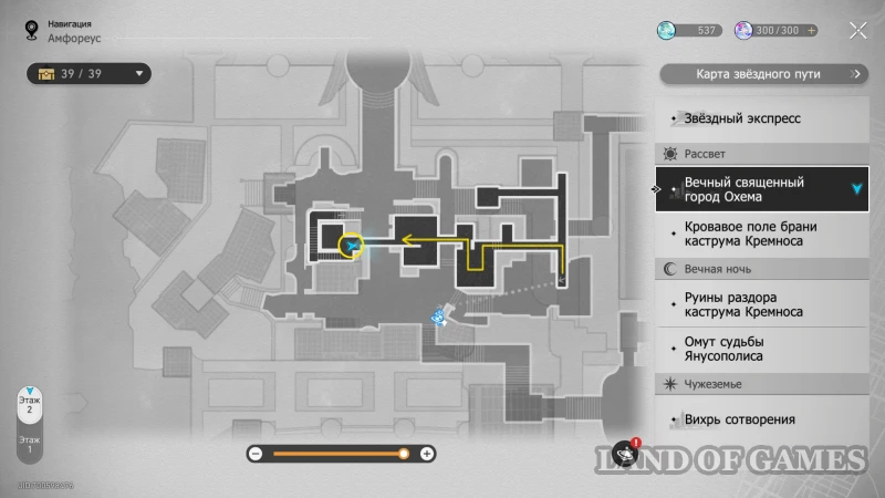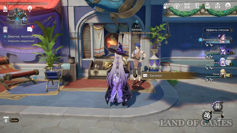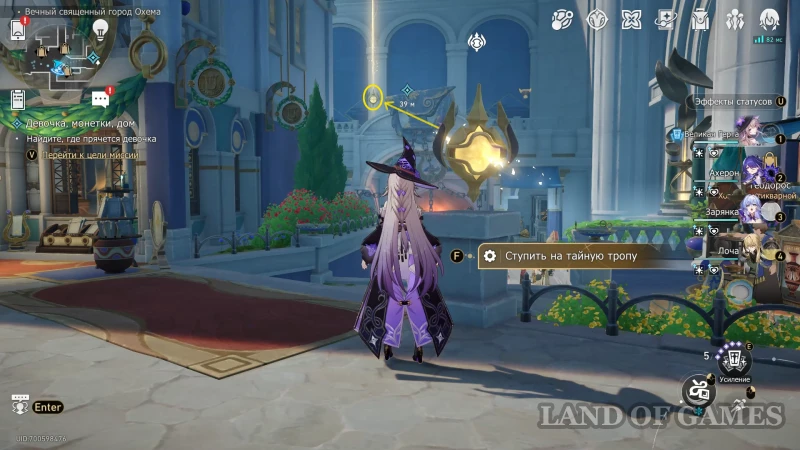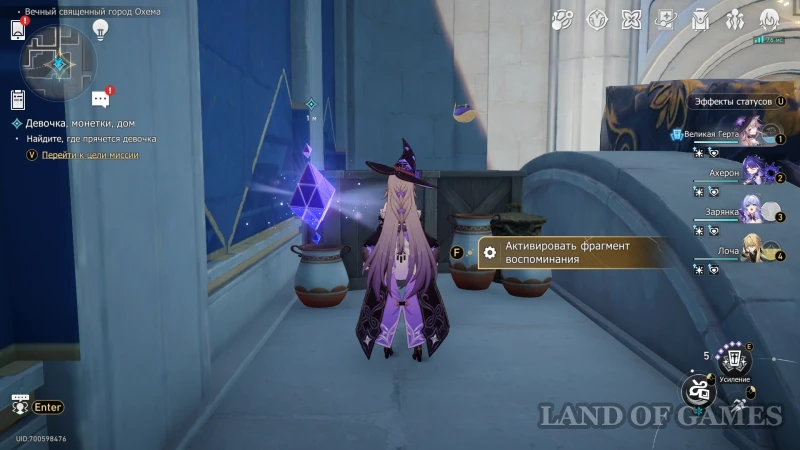 Следы девочки нужно искать на балконе по восточной стороне 2 яруса рынка: подойдите к якорю на площади и активируйте расположенный рядом мини-телепорт на тайную тропу, от которого получится подняться к указанному лавочником месту. После перемещения изучите фиолетовый осколок памяти перед ящиками слева.