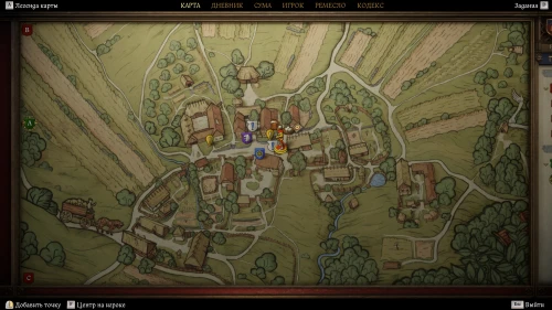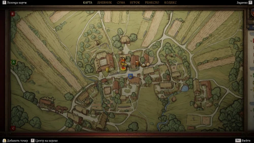 Отыскать писаря можно в этой же деревне – Тросковице. На картинках ниже показано его расположение. Расспросите его про легенду о пане. Он поведает вам ее, даже если вы провалите убеждение (правда, в этом случае упадет ваша репутация). Он также расскажет первую загадку и передаст вам рецепт полэкса Брунцвика.