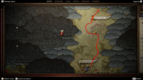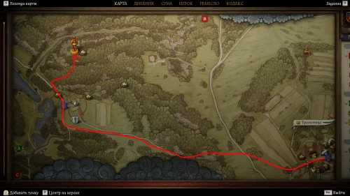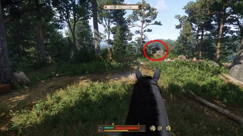 Возвратитесь к постоялому двору, а затем двигайтесь на юго-запад к хижине Божены, которую вы повстречали в прологе. После этого продолжайте идти в западном направлении, пока не дойдете до Лагеря охотников за сокровищами. Приготовьтесь к битве, так как здесь вам предстоит победить трех бандитов.