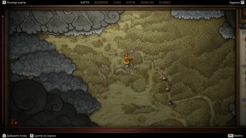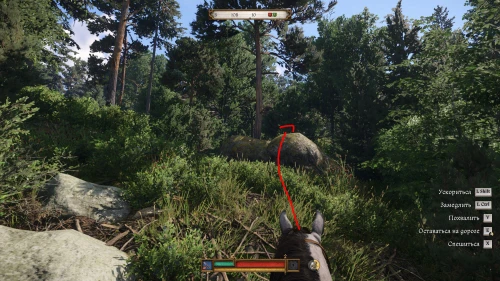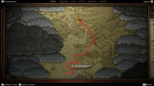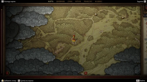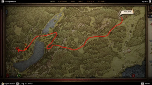 Первая карта показывает на место охоты на волков, расположенное к западу от вашего текущего местоположения. Вернитесь к дороге и продолжайте скакать на запад, пока не дойдете до развилки. Здесь поверните налево и скачите уже на юг до следующего небольшого разветвления. Тут поверните на запад от дороги и пройдите в лес.