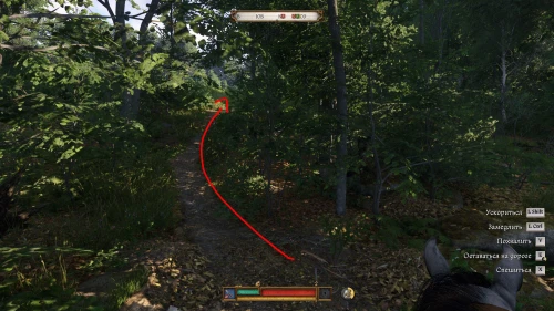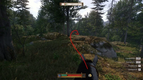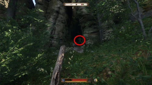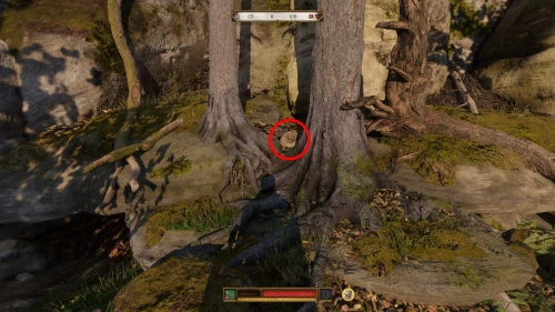 Добавим, что убивать всех волков зачастую необязательно – убив двух из них и ранив остальных, вы с большой вероятностью пустите всю стаю в бегство. Разобравшись с ними, подойдите к подножью выступа, где растут два дерева, и прямо между ними вы обнаружите мешочек.