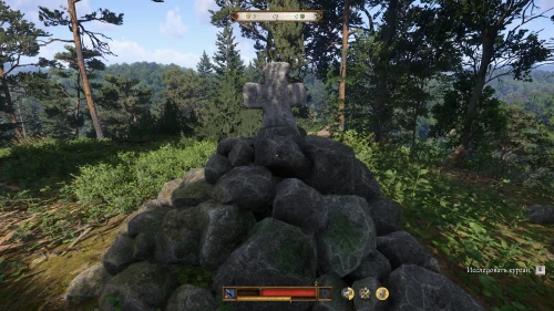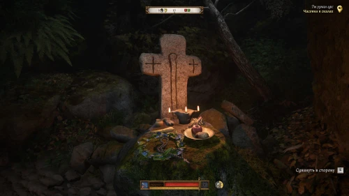 Впрочем, вы можете дождаться ночи и просто прокрасться мимо них к сокровищу или скрытно убить их при помощи ранее добытого кинжала Брунцивка. Разобравшись с врагами тем или иным способом, подойдите к кресту и исследуйте курган, чтобы получить Бацинет Брунцвика, уменьшающую кость и потертые четки.