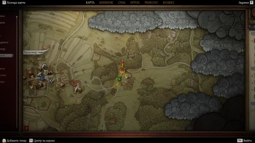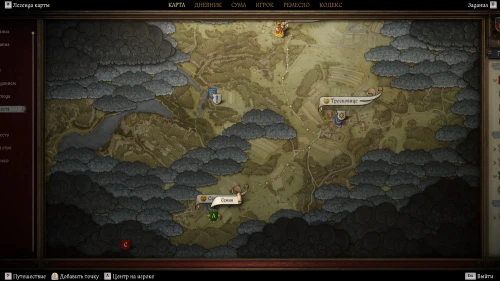 Примечание: Не забывайте пользоваться системой быстрого перемещения, которая позволяет практически мгновенно добираться до поселений и ключевых локаций, где вы бывали ранее. Для этого нужно навести курсор на синий значок колеса повозки и нажать клавишу «E». Отметим, что активировать путешествие можно только в открытом мире, поэтому выйдите из здания для срабатывания механики.