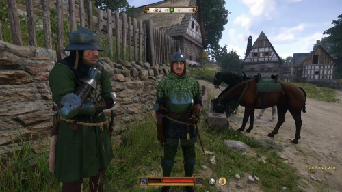 Садитесь на свою лошадь или просто бегите за паном и сотником на своих двоих, нажав клавишу «L.Alt». Они начнут расспрашивать вас об инциденте с Юрко, а затем пан Семин захочет вызвать вас на дуэль. Примите вызов для повышения репутации. Пройдите еще немного вперед, а, когда все остановятся, слезьте с коня и поболтайте с Корягой.