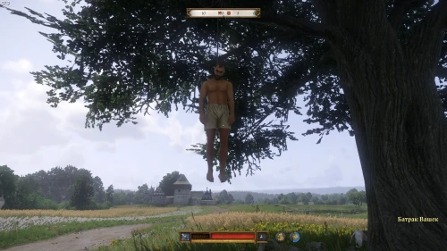- Убедите Вашека, выбрав вариант «Никто не знает, как все обернется» или «Ты мне не ровня», чтобы получить необходимую вам информацию и заставить его сдаться. В этом случае вы все равно сможете получить карту сокровищ, но сделать это удастся позднее. Нужно будет отыскать место повешения батрака и забрать предмет с его тела (на скриншотах ниже указано его расположение).