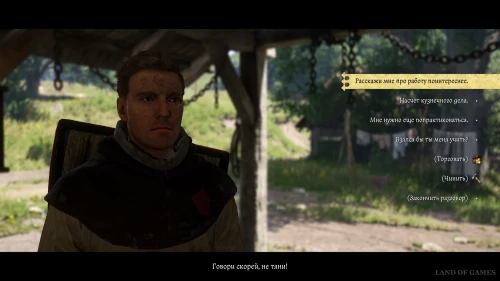 Доступ к нему открывается только после выполнения миссии «Сын кузнеца» (если вы пошли по пути мельника и уже прошли «Незваные гости на свадьбе») или «Прогулка» (если вы пошли по пути кузнеца для попадания на свадьбу). Вам необходимо будет просто поговорить с Радованом, который расскажет вам, что ему требуется сварная сталь для изготовления лучшего меча. Раздобыть же ее можно у отшельника, владеющего обломком меча из Андалузии.