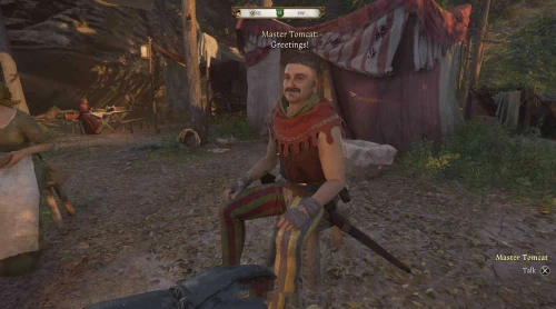 Отметим, что если вы уже бывали на свадьбе по квестовой цепочке мельника, то на создании меча задание не закончится. Вам нужно будет отнести выкованный клинок не жениху, а Коту. Отыскать же его можно в таборе кочевников, находящемся к северо-западу от Семина. На скриншотах ниже показано его примерное расположение (в зависимости от времени суток его местоположение может меняться, поэтому сверяйтесь с маркером).