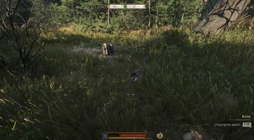 Убедитесь, что у вас имеется при себе лопата, а затем езжайте на запад от поселения к маркеру в лесу. Будьте осторожны, так как рядом с крестом на вас могут напасть волки. Разобравшись с врагами, подойдите к надгробию, а затем раскопайте могилу. Внутри вы обнаружите мешок с разными предметами.