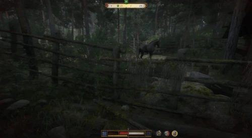 Направляйтесь в выделенную зону для поисков на севере от пастуха и в ее центре вы обнаружите покинутый лагерь. Пройдите в загон и осмотрите черного коня по кличке Враник (нужно вплотную подойти к нему).