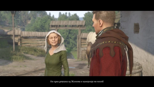 Воспользуйтесь быстрым перемещением и поговорите с Доротой, хозяйкой купален. Днем ее можно отыскать сидящей на скамье у входа в баню. Расскажите ей о предложении мельника. Неважно какие ответы вы будете выбирать — исход диалога будет один.