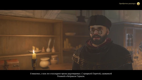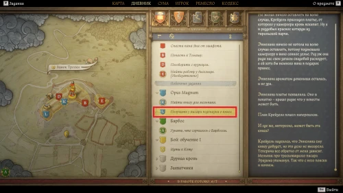 Эразим расскажет о том, что данную книгу забрал пан Никвард Либак. Выведайте у него о тех, кто мог видеть пана последний раз, в противном случае маркеры на карте отображаться не будут. Теперь вам предстоит опросить троих человек в поисках зацепок: кухарку Перхту, служанку Регину и батрака Герша.