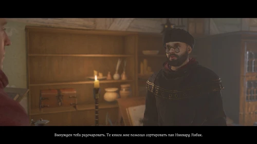 Если же вы попытаетесь заговорить с ним о книге до выполнения сюжетного задания, он ответит вам, что разговаривать с вами будет только после казни пана Птачека.