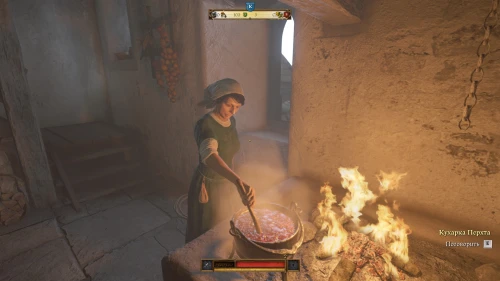 Обычно Перхту можно встретить кухне в западной части замка. Чтобы получить от нее какую-либо информацию, вы можете либо подкупить кухарку (200 грошей), либо пройти проверку на обаяние.
