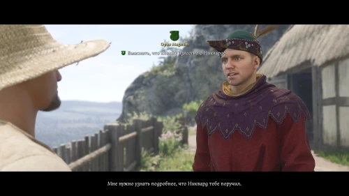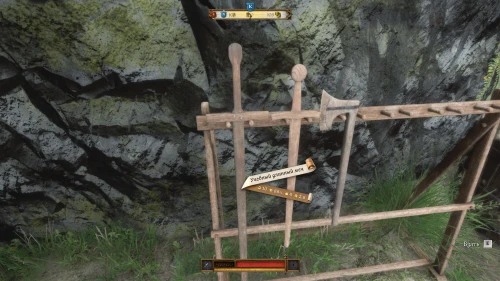 Еще один человек, который в последнее время имел дела с Никвардом — батрак Герш. Найти его можно за стенами замка, рядом с большим загоном. Узнать конюха можно по белой одежде и белой шляпе. Он попросит у вас принести ему меч, взамен на информацию.