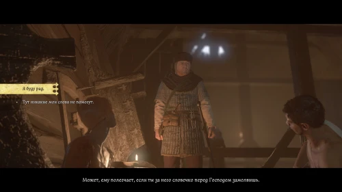 Там священник и узнает о том, что пана Яна и Индржиха взяли в плен. Вы также сможете откликнуться на просьбу служанки Анны помолиться за тяжело раненого батрака. За это вы получите памятный перстень, который при надобности вы сможете продать и купить на полученные деньги спасительный шнапс.