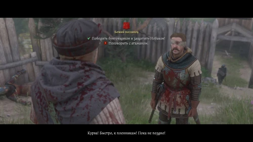 В следующей сцене Индро и Птачек будут освобождены. Задайте интересующие вас вопросы о том, что происходит на самом деле, и исчерпайте все диалоги. Далее священник поможет атаману Яну Жижке разобраться с поврежденным глазом, после чего начнется следующее задание — «Перст Божий».