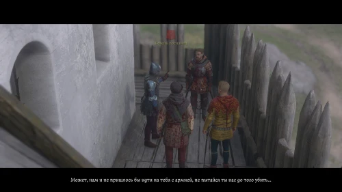 Бандит согласится и приведет вас прямо к командиру отряда по имени Эрик. Во время диалога с ним на вас нападет группа бандитов-мародеров. Сразившись с ними, Эрик расскажет Богуте о том, что Индржих и Птачек живы и находятся сейчас в тюрьме Небакова.